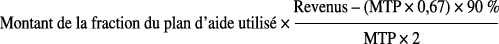 si les ressources sont supérieures à 2,67 fois la MTP (soit 2 927,65 €), le bénéficiaire s’acquitte de 90 % du montant du plan d’aide utilisé.