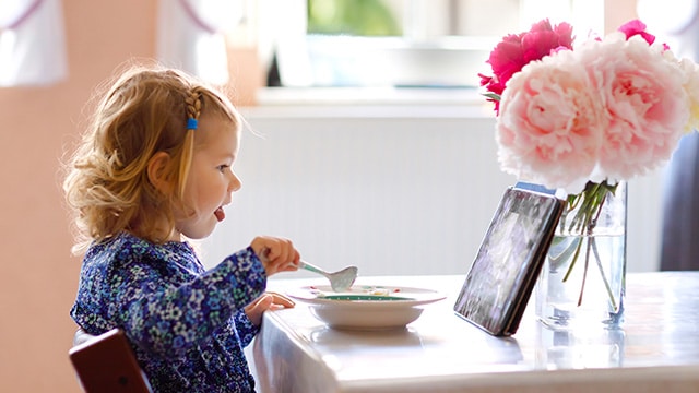 Dans une approche analysant ces relations à chaque âge, le niveau de langage à 2 ans était plus faible chez les enfants « toujours » exposés à la télévision pendant les repas de famille par rapport aux enfants qui ne l’étaient « jamais ». De même, à 3 et 5 ans et demi, les évaluations de langage et le quotient intellectuel verbal étaient plus élevés chez les enfants « jamais » exposés à la télévision pendant les repas de famille, par rapport à ceux qui l’étaient « parfois » ou plus fréquemment. Dans une approche s’intéressant à la temporalité entre l’exposition aux écrans et le développement du langage, le quotient intellectuel verbal évalué à l’âge de 5 ans et demi s’est révélé inférieur chez les enfants qui ont toujours été exposés à la télévision pendant les repas de famille à l’âge de 2 ans comparé à ceux qui ne l’étaient jamais (différence moyenne de 3 points de QI). « Ces résultats encouragent donc à mieux prendre en compte le contexte dans lequel s’inscrit l’exposition aux écrans, et pas seulement sa durée », insiste l’étude.